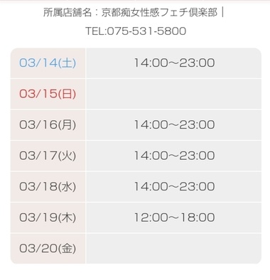 | 03/05(木) | 03/06(金) | 03/07(土) | 03/08(日) | 03/09(月) | 03/10(火) | 03/11(水) |