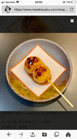 萬勝堂の、こがし醤油のみたらし団子