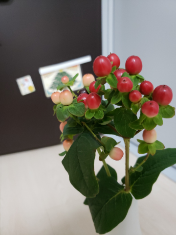 実はわたし、こうみえて、 家に花を置いていることが多いです この時期はエアコンや寒さで持たないので しばらく置いてなかったのですが 実ならどうかなと思って ヒペリカムをお迎えしました はじめまして、ヒペリカムです/ ![]() 赤と薄いピンクと緑で、なんとなく 今の季節にぴったり 夏前に黄色い花をつける…はず…(汗) 白…いや、黄色のはず…笑 ブーケや生け花にするときに 決して主役にはなれませんが 目を引く植物です。 タイトル通りですが 落ち込んでいる人に 贈るといいかもしれません これ、祇園のかに屋さんで 見られると思います すごくかわいいので 機会があったら見てみてくださいね さて、事務所につきました! 本日もお誘いお待ちしています♪