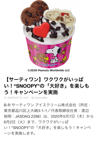 おはようございます ちなにとっての朗報かつ悲報が!! ![]() これを知ってしまったからには サーティワンにぜひとも行きたい!! 食べたいけど、一体京都のどこの サーティワンが開いてるというの…( ; ; ) 京都はどこも開いてないのかなぁ… 6月2日にはどこかのサーティワンは 再開できていたらいいけど EテレのPEANUTSも終わってしまったし 何だか寂しいよ(p_-) 観たい映画をいっぱいリストに入れて るんやけど、何から観たらいいのか 分からないよ〜