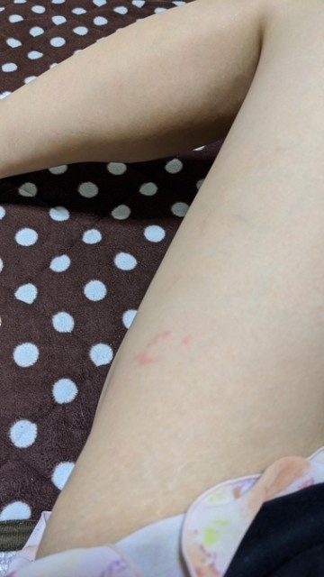 昨日、出勤するために最寄り駅まで自転車で向かってたら 左の太もも辺りが急にチクってしました 痛いし周りを触れるとビリってします しばらく時間経って写真みたいな感じになりました! きっと毛虫かな? 林の近く通ってたので、きっと毛虫の毛が風に飛ばされてきたっぽい ロングスカート履いてたのに太もも刺されると言う器用なことしました… あとお尻も少し刺されてます! 水がかかっても少し痛いので、ムヒと かぶれのお薬塗ってさっさと治す Twitter ID→@shizuka__kyoto ![]()