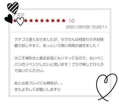 アズジさまへ いつもセラと 変態プレイを楽しんでくれて ありがとー ![]() 楽しそうな願望 現実にいたしましょ 女の子になって艶めかしいアズにゃんを セラがレ○プしてあげる ![]() 拡張して※ドスチ○コを突っ込んで アズにゃんが喜ぶとこ見てあげるね ![]() たくさんセクハラしちゃうわよ ![]() お忙しい中 嬉しい口コミありがとねーん ![]() セラ ※ドス→大物です ![]() ![]()
