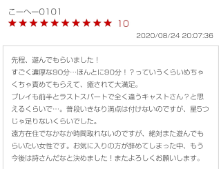この手をどけたら あなたの大好きな……… ふふふっ なんだろね? --------------------------------------------------- 先日、電車で隣に座った女の子が えっさえっさと勉強していて わー、偉いなぁ。 さすがだわ〜。 って思いながら なんの教科かなーって見てしまいまして( ´_ゝ`) 二項定理。 …………えっ わかる?((( ;゚Д゚))) 全くわからんのですが( ´_ゝ`)( ´_ゝ`)( ´_ゝ`) ウタチャン一応ね、一応 卒業証書貰いましたけどね………( ^ω^ )滝汗 もはや数学はサインコサインタンジェントのみで 卒業した気がしますよ(ヽ´ω`) 担任の先生が必死で教えてくれたから 95点取ったウタチャンの歴史的快挙。 えっ、100点取れなかったのは 解答欄ミスですねぇヽ(´A`)ノ 脳の引き出し多いくせに 数字は覚えられませぬ。 公式覚えても使い処ミスる。笑 向き不向きってやつです。たぶん(爆) さてさて 本日もよろしくおねがいします ご予約は無いのでどーんと ![]() お待ちしておりまする 夏の疲れリフレッシュ作戦 きき湯を入れてさっぱりしたカラダに 肩・腰・脚などお疲れの所を中心に マッサージいたします オイル無しで行いますので 匂いの心配な方も是非 ウタチャンに『きき湯したいな』って 言ってくださいね( ^ω^ ) 遊びに来てくれるあなたへ ![]() お願い お会いするまでマスクを着用していきます 入室後一緒にうがいと手洗いしましょうね 楽しい息抜きの時間になるように ウタチャンも対策をして気を付けますので 最初の5分間という大事なお時間を頂くこと 何卒ご理解とご了承をお願いいたします ---出勤予定--- 8/28(金) 10:30-17:00 8/29(土) 10:30-15:30 8/30(日) おやすみ 8/31(月) 10:30-17:00 9/01(火) 10:30-17:00 9/02(水) おやすみ 9/03(木) 10:30-17:00 9/04(金) 10:30-17:00 9/05(土) 10:30-15:30 Twitterも見てね Twitter…utauta_KC まさかの二件こうちゃん ![]() 待って待って。 こっち気づいてなかったよーーー!!!!( ´;゚;∀;゚;) 90分長かったよねぇ…?( ^ω^ )笑 恋人の○○に住んでるこうちゃんから たくさん癒しをいただきましたけどね笑 (語弊があるわ 旅の終わりや… って言いながらミスチルの 終わりなき旅聞きながら帰りました?笑 こちらこそ不束痴女ですが よろしくおねがいいたします 目的はウタチャンのためににしくん とか言っちゃうすけべなお口!!ヽ(´A`)ノ笑 本当にリップサービスが上手やから 男前も相まってモテモテなんだろな〜笑 そこに交わる変態さがまた色気を醸し出しちゃう お風呂でくすぐったい〜って言いながらきちんと ウタチャンの言うこと聞いてくれるから いっぱいなで撫でしたくなっちゃう ウタチャンスペシャル未放出のため再チャレンジ お待ちしてますねとっても我慢強いから 負けちゃうかもー笑 また来るねッ!!(*・∀・)☆キラーンってしながら きっちり礼儀正しく車内からお辞儀するところが 真面目なところ出てますよ 本当はとってもがんばり屋さんなのに 謙遜するところも愛されてる魅力ですね 空いた時間はおーちゃん もはや連れ回したのはウタチャンなのよね 楽しすぎました 急遽空いたからってずっと行きたがってた トトロのところ連れてってくれてありがとう しかも身体をお香まみれにしましたね笑 帰り際まさかの時間ミス 思い込みって怖いよねぇ。゚(゚^∀^゚)゚。笑 次からはタイマーセットすることにします あっ、 でも最初からミスってたら意味ないですね笑 ![]() くじ運はにじゅうまるまさかのね笑 なんだかんだこれが一番嬉しかったえへへ