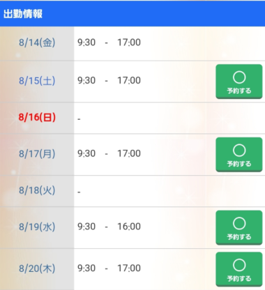 8/15(土) 10:30-21:00夜出勤